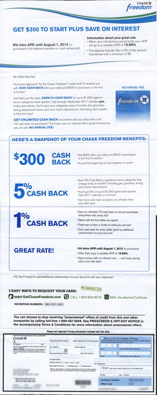 What this tells me is that the big banks like J.P. Morgan Chase in this case, are digging deep into their databases to find people to sign up for credit cards. The couple we bought this house were elderly when we bought it. I know the husband has since passed away and for all I know the wife, whom this was addressed to, may have also passed away since then.